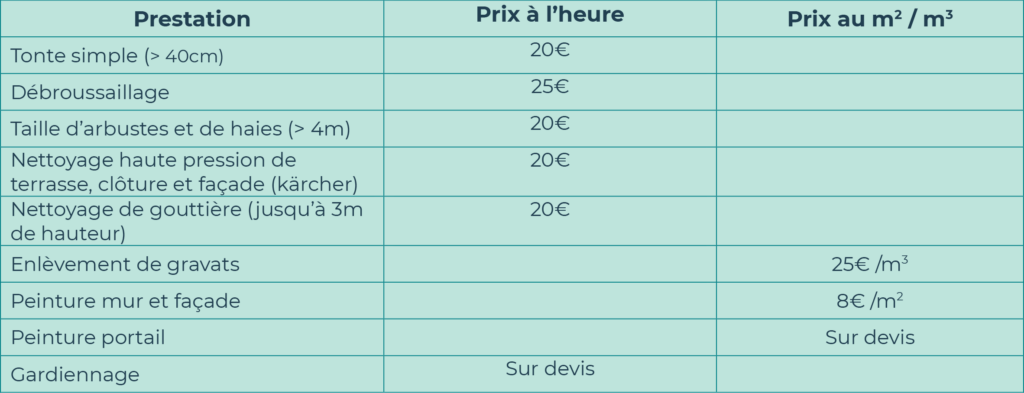 Tonte, taille d’arbustes et de haies, débroussaillage.